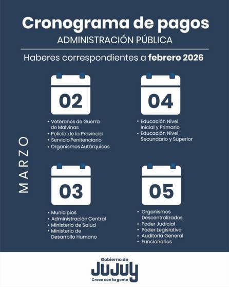 Este miércoles, el gobierno anunció que empieza el cronograma de pagos a la administración pública, a partir del próximo lunes 2 de marzo y se extenderá hasta el jueves 5 de marzo.