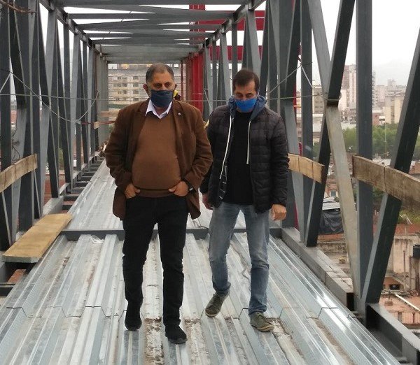 En el marco del aislamiento social y epidemiológico obligatorio, la Municipalidad de San Salvador de Jujuy avanza con la etapa de montaje de la estructura para el piso de la pasarela. Se trata de la colocación del sistema de estructura metálica de pisos para poder rellenarla con hormigón posteriormente.