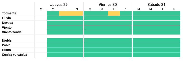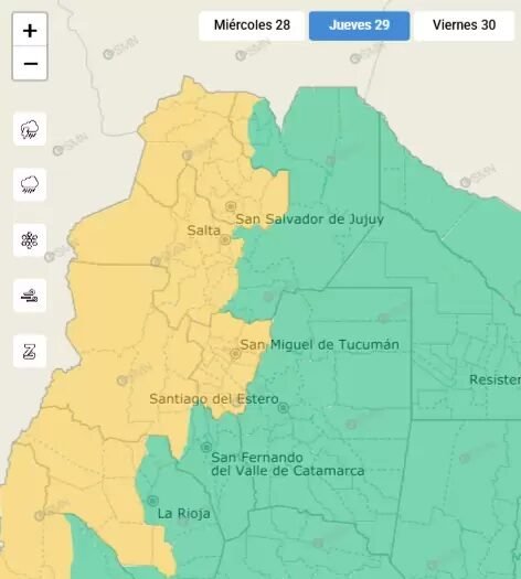 El Servicio Meteorológico Nacional informó este jueves que toda la provincia se encuentra bajo alerta amarilla por tormentas, por lo menos, hasta mañana viernes.