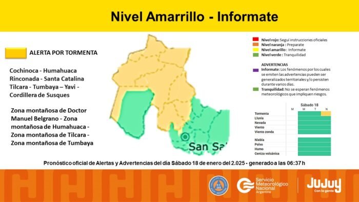 El Servicio Meteorológico Nacional (SMN) emitió una nueva alerta amarilla por tormentas para la noche de este sábado.