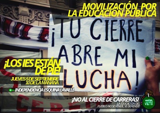 Una más y van … Siguen las demandas y reclamos por el cierre de las carreras que brindan los Institutos de Educación Superior (IES). Este jueves, se llegarán a la Cámara de Diputados para impedir la reestructuración de los profesorados dispuesta por el Ministerio de Educación implica el cierre o el achicamiento de carreras, dejando a alumnos sin posibilidades de continuar sus estudios y a docentes sin trabajo, despedidos.