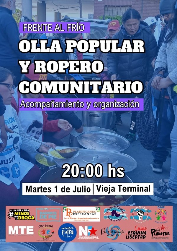 Organizaciones como el MTE, el Movimiento Evita, la Red Puentes, Barrios de Pie y Nuestramérica, entre otras, instalarán una olla popular para ofrecer una comida caliente y entregarán ropa de abrigo. Además, recibirán donaciones para seguir asistiendo a las personas que lo necesitan.