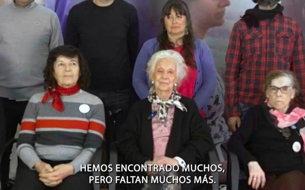 «Tía que busca», «entonces a mi hermano», «hermano que busca», «restituí mi identidad», «encontré a mi nieta», relatan sus historias en el video Buscarita Roa, María Ester Landaburu, Adriana Metz, Juan Pablo Moyano, entre otros integrantes de la organización de derechos humanos.
