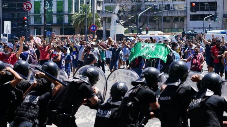 Más tarde, los disturbios se trasladaron al sector vallado, comprendido entre ese punto y la Casa de Gobierno, donde se registraron corridas, gases lacrimógenos y detonaciones de balas de goma.