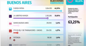 El Frente Fuerza Patria ganó las elecciones en PBA: Le sacó más de 13 puntos a LLA domingo, 7 septiembre, 2025 Con el 82,22% de las mesas escrutadas, el peronismo se impone en la provincia al alcanzar el 46,93% de los ... Leer más »