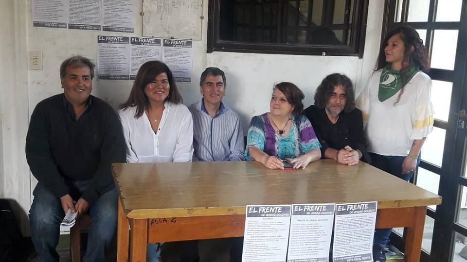 Junto a Ocampo, está la candidata a secretaria adjunta, Elsa Mamaní; a la secretaría gremial, David Montenegro, de Finanzas, Rosalba Castillo y Prensa, Fernanda Rodríguez