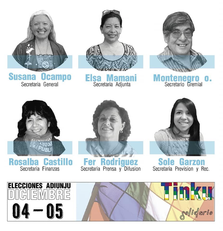 La Lista Turquesa “Tinku Solidario” lleva como candidata a Secretaría General, Susana Ocampo, expresó que “esta es la segunda instancia que nos presentamos en elecciones gremiales y surgimos como la consecuencia y consigna el Salario No es Ganancia y que la Universidad se haga cargo de la deuda que gesto ante la AFIP allá por el año 2010 hasta el 2014”, agrego que “hoy vamos a sostener la propuesta que hicimos hace tres años atrás, pero con mucha experiencia”.
