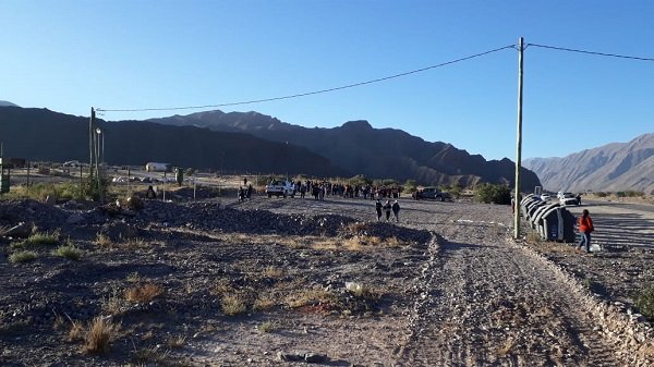 El domingo un nutrido grupo de unas 45 personas colocaron carpas en el predio que fue rápidamente rodeada por la infantería de la provincia. Tras un par de horas de negociaciones con el Intendente Ricardo Romero se retiraron. El ejecutivo acordó realizar una reunión con ellos este lunes, donde le propondría una solución más conveniente, entendiendo ambas partes que ese terreno, lindero al Rio Huichaira, es de riesgo hídrico.