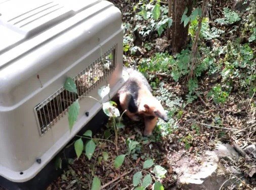 Personal del Ministerio de Ambiente liberó un ejemplar de oso melero (Tamandua tetradáctila) que fue rescatado en el Barrio Providencia de la ciudad de San Pedro, donde aparentemente había sido perseguido y atacado por una jauría de perros.