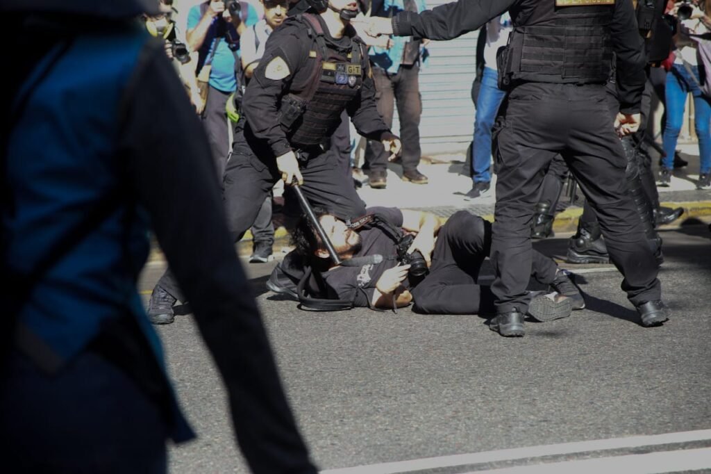 La aplicación del protocolo antipiquetes de la ministra de Seguridad Patricia Bullrich es siempre de violencia inusitada, con golpes, patadas y detenidos