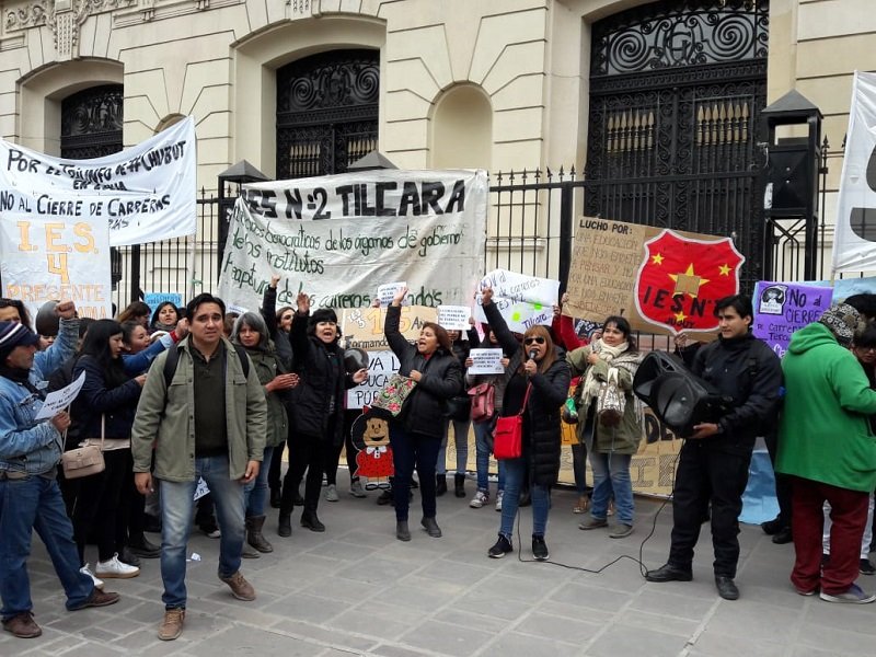 Alumnos, docentes, egresados y padres de estudiantes, protagonizaron esta mañana, una nueva marcha por calles céntricas de la capital rechazando el cierre de algunas carreras en los Institutos de Educación Superior que funcionan en la provincia. Luego realizaron actos, frente a la Casa de gobierno y luego en las escalinatas de la Cámara de Diputados de Jujuy.