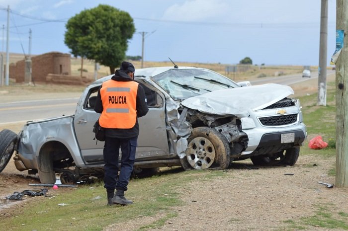 Ambos miembros se trasladaban en una camioneta Chevrolet S10 color gris, luego de chocar con la parte trasera de un auto, volcó y los cuerpos salieron despedidos de la camioneta.