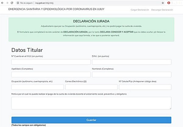En ese sentido, los interesados deberán completar un formulario on line que tiene carácter de declaración jurada, el mismo está publicado en http://ivuj.gob.ar/ddjj/ddjj, y el sistema les solicitará datos del titular: nombre y apellido; N° de Cuenta IVUJ; DNI; Ocupación; Correo electrónico; N° de celular y motivo por el cual requiere se le haga el corrimiento del vencimiento con lo cual tampoco habría pago de intereses.