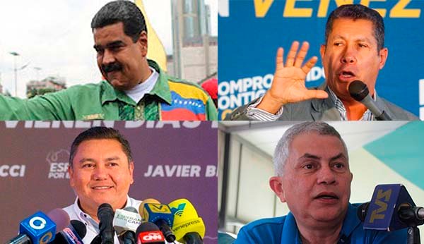 Este domingo 20 de mayo se realizan las elecciones en Venezuela para elegir al presidente que gobernará los próximos seis años. El actual mandatario Nicolás Maduro busca la reelección frente a otros tres candidatos opositores: Henri Falcón, apoyado por Avanzada Progresista, Copei y el Movimiento Al Socialismo (MAS), el pastor evangélico Javier Bertucci (Esperanza por el Cambio) y Reinaldo Quijada (Unidad Patriótica Popular 89).