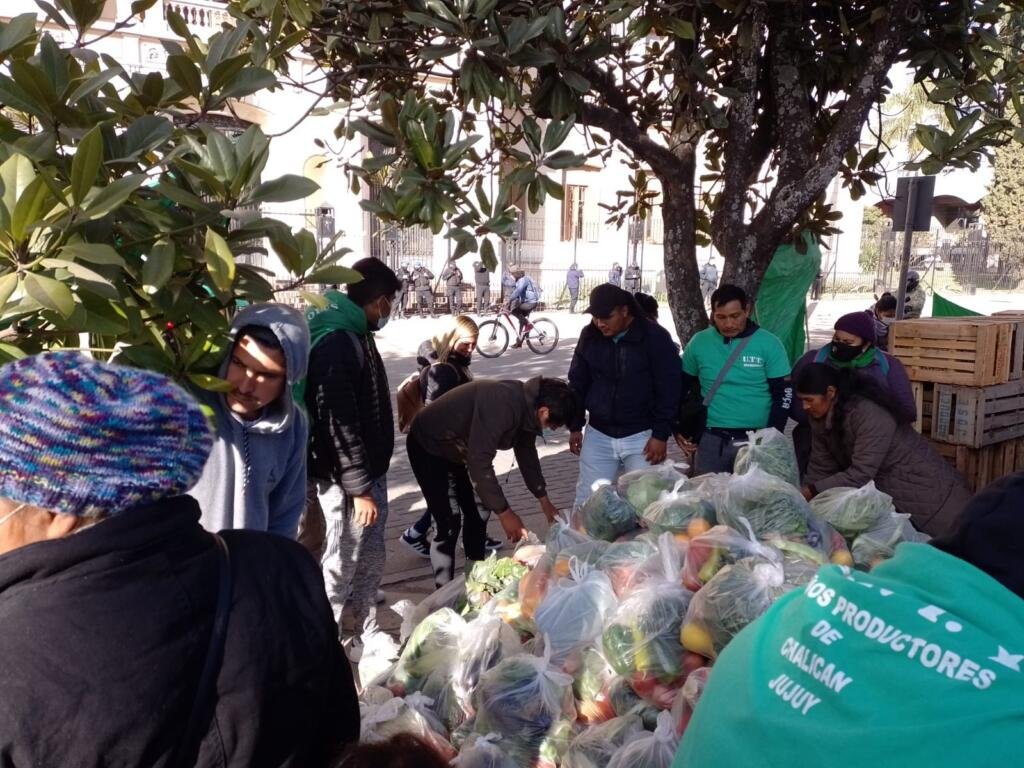 Este miércoles, la plaza Belgrano amaneció regada de verduras y frutas porque los pequeños productores agrupados en la Unión de Trabajadores de la Tierra (UTT) de distintas localidades del interior no pueden costear su producción por el aumento de los insumos, que “están a precio dólar”, decía Juan Mamani de Fraile Pintado al Submarino Radio (FM Conectar 91.5)
