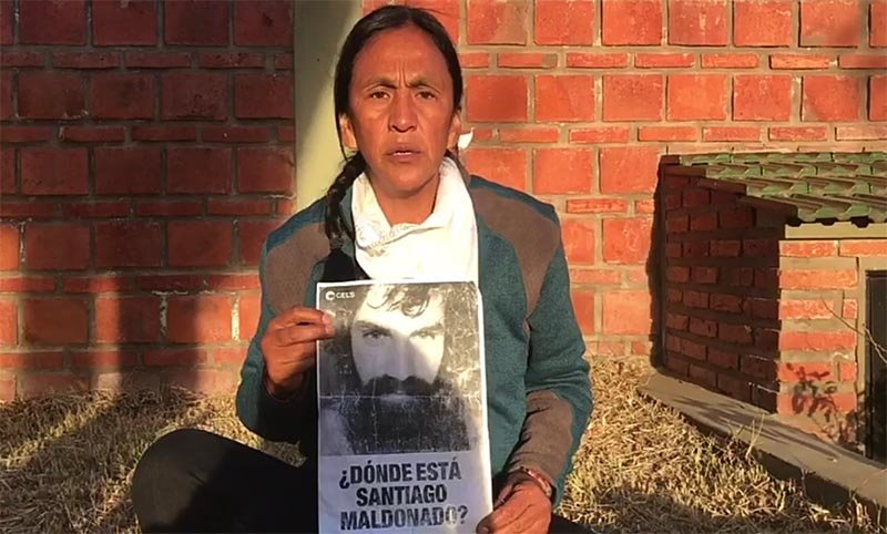 “Pregunto dónde está Santiago Maldonado. Tiene que aparecer con vida. Pedimos todos los argentinos al gobierno nacional de Macri que aparezca con urgencia”, dice la dirigente social.