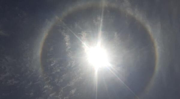 Un halo solar se formó en el cielo de Jujuy esta mañana pasadas las 11. Se trata de un efecto óptico provocado por la refracción de cristales de hielo hexagonales que se encuentran en suspensión.