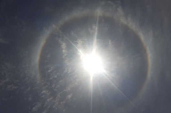 Un halo solar se formó en el cielo de Jujuy esta mañana pasadas las 11. Se trata de un efecto óptico provocado por la refracción de cristales de hielo hexagonales que se encuentran en suspensión.