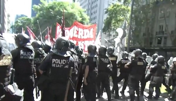 La represión comenzó frente al edificio ubicado sobre Leandro Alem al 600 y avanzó hasta la avenida Córdoba. Los policías persiguieron a los trabajadores que desconcentraron hacia esa zona para protegerse de los camiones hidrantes y motos que comenzaron a perseguirlos.