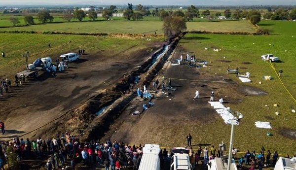 El estallido ocurrió la noche del viernes, a las 18.50 (21.50 de la Argentina) en la comunidad de Tlahuelilpan, a unos 120 km de la capital, luego de que traficantes de combustible perforaron un ducto de la empresa estatal Pemex y unas 700 personas, incluidas familias enteras, se lanzaran para llevarse nafta en contenedores.